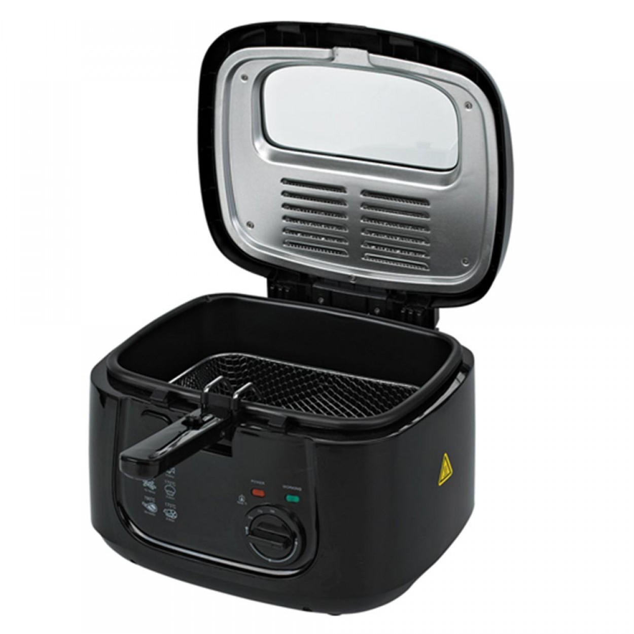 Η χωρητικότητα του είναι στα 2,5 λίτρα. Το καλάθι τηγανίσματος μπορεί να χαμηλώσει ή να ανυψωθεί. Διαθέτει ρυθμιζόμενο θερμοστάτη, πτυσσόμενη λαβή και αφαιρούμενο καπάκι με μεταλλικό φίλτρο. Το κλείδωμα ασφαλείας θα σας λύσει τα χέρια.