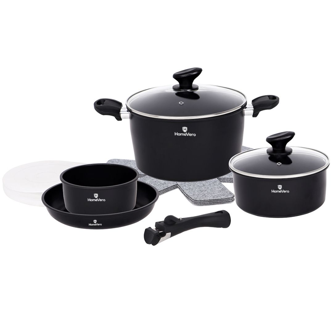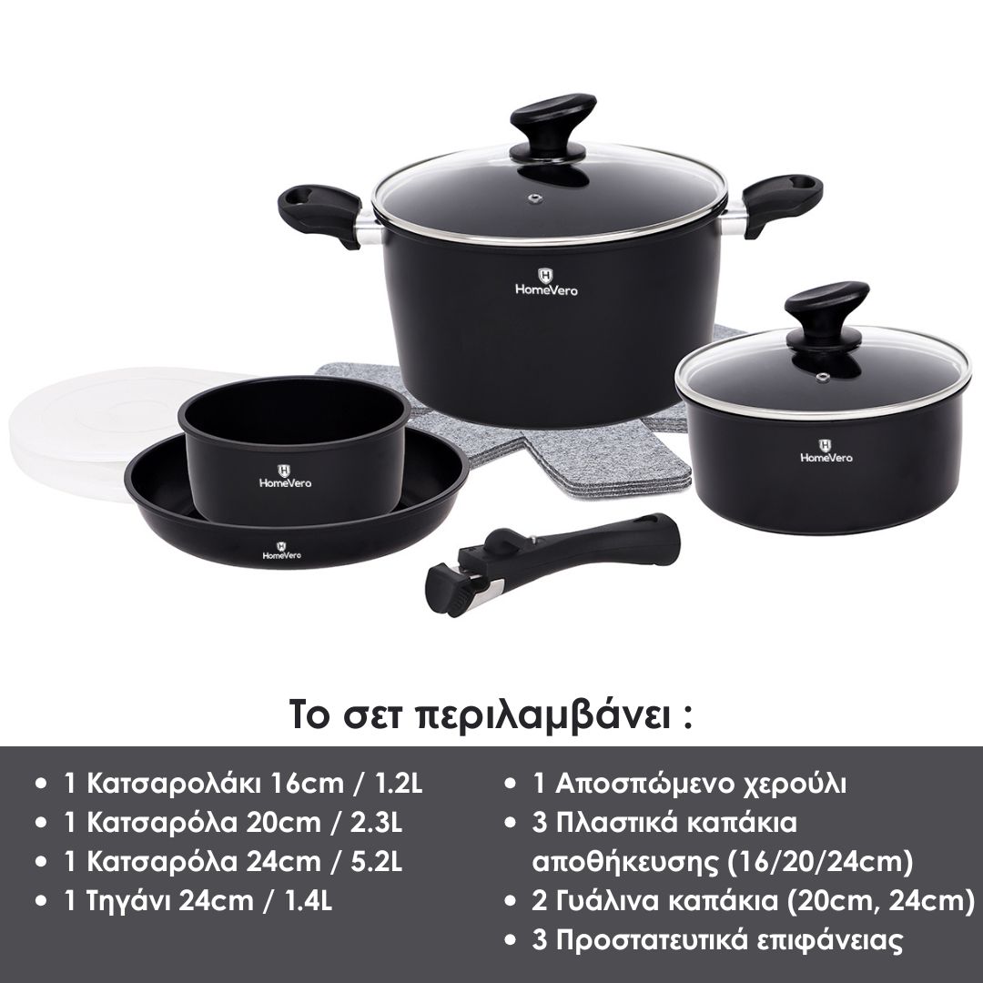Σετ Μαγειρικά Σκεύη 13 τμχ με Αποσπώμενα Χερούλια HomeVero HV-1013B (Μαύρο)