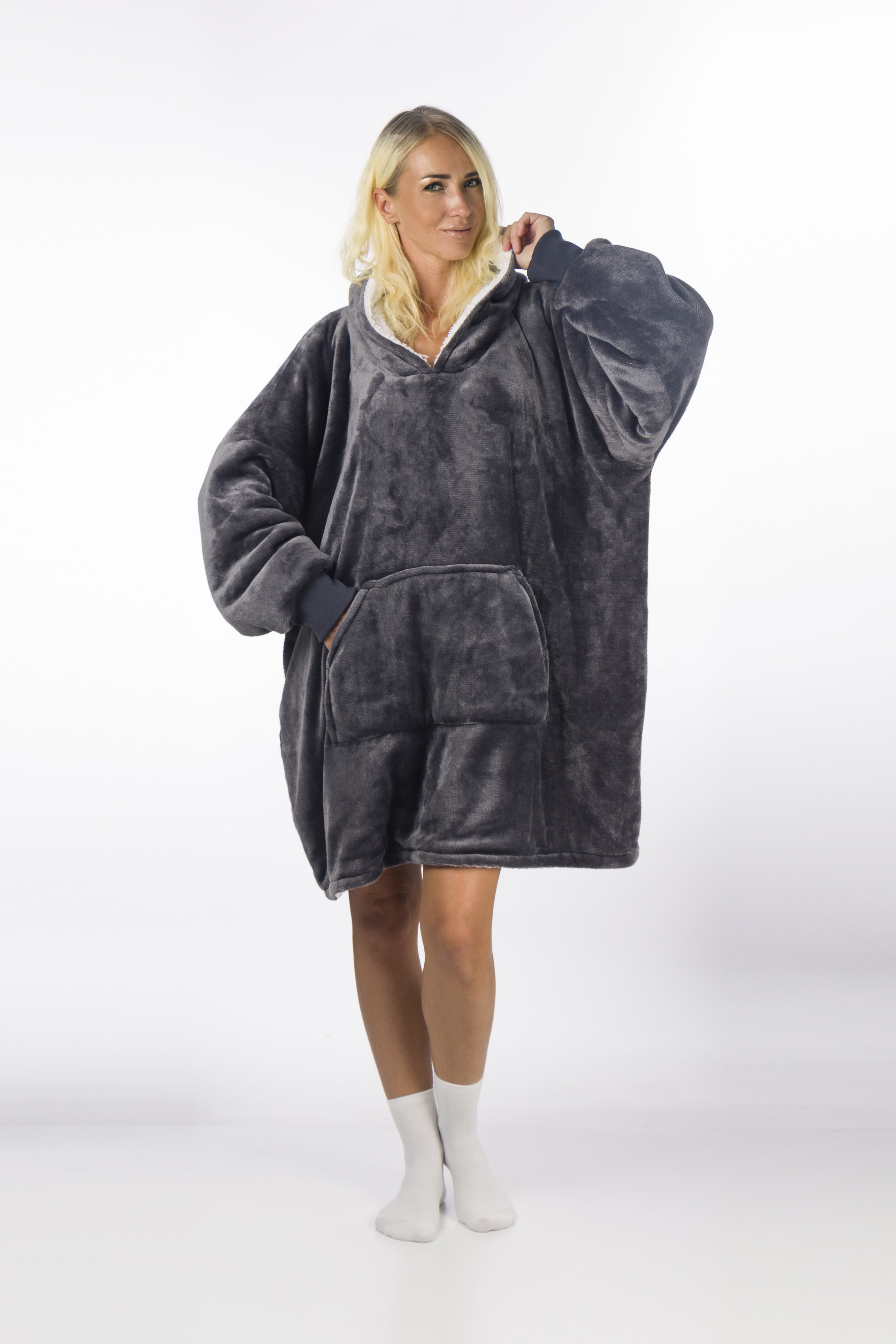 HomeVero Comfort Blanket Βελούδινη Oversized Μπλούζα – Κουβέρτα HV-CB-G Γκρι