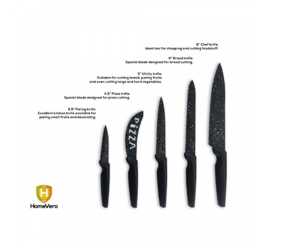 Σετ 5 μαχαίρια με μαρμάρινη επίστρωση & κεραμικός αποφλοιωτής HomeVero HV-MBC5