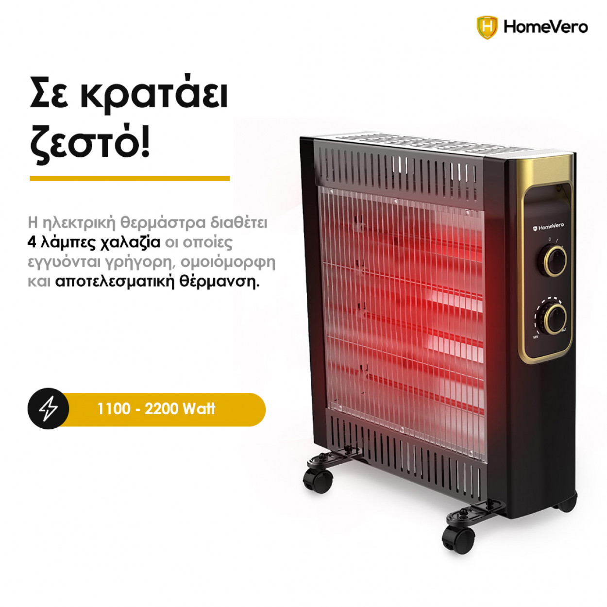 HomeVero Θερμάστρα Χαλαζία με ρυθμιζόμενο θερμοστάτη 2200W HV-QH2200