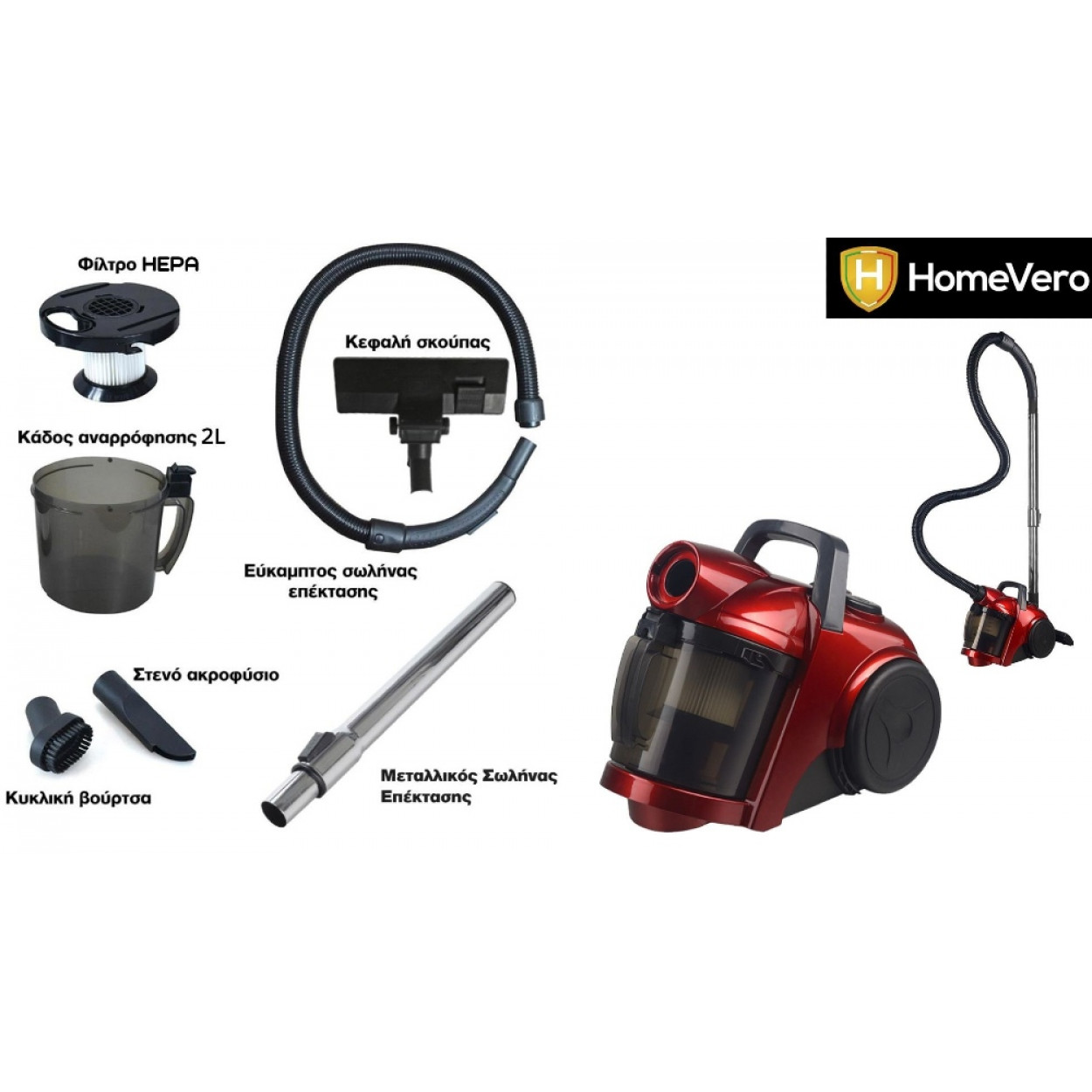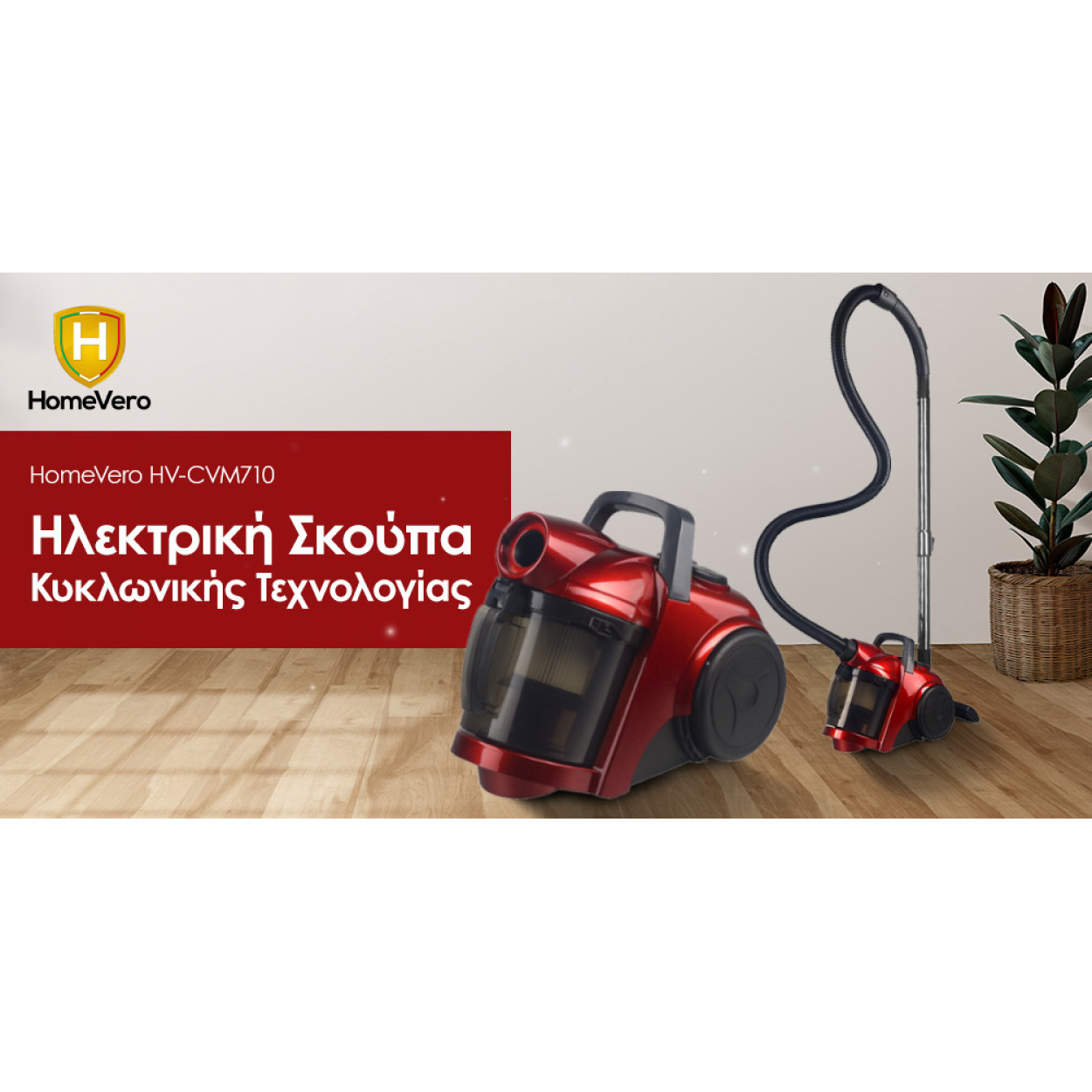 Ηλεκτρική σκούπα κυκλωνικής τεχνολογίας 2L, 700watt με φίλτρο HEPA και μεταλλικό σωλήνα HomeVero HV-CVM710