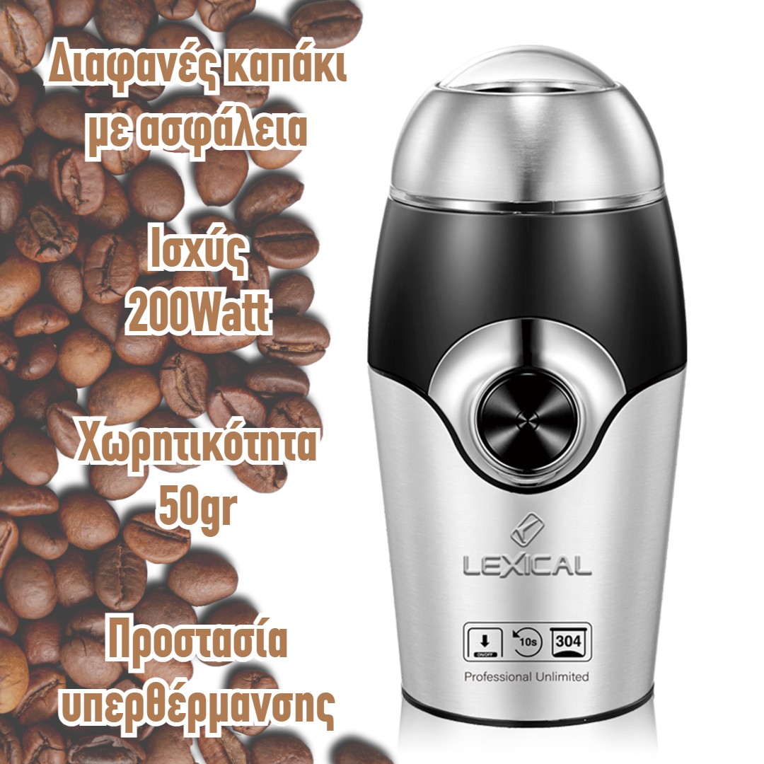 Μύλος Ηλεκτρικός Άλεσης Καφέ 200W Lexical LCG-0710