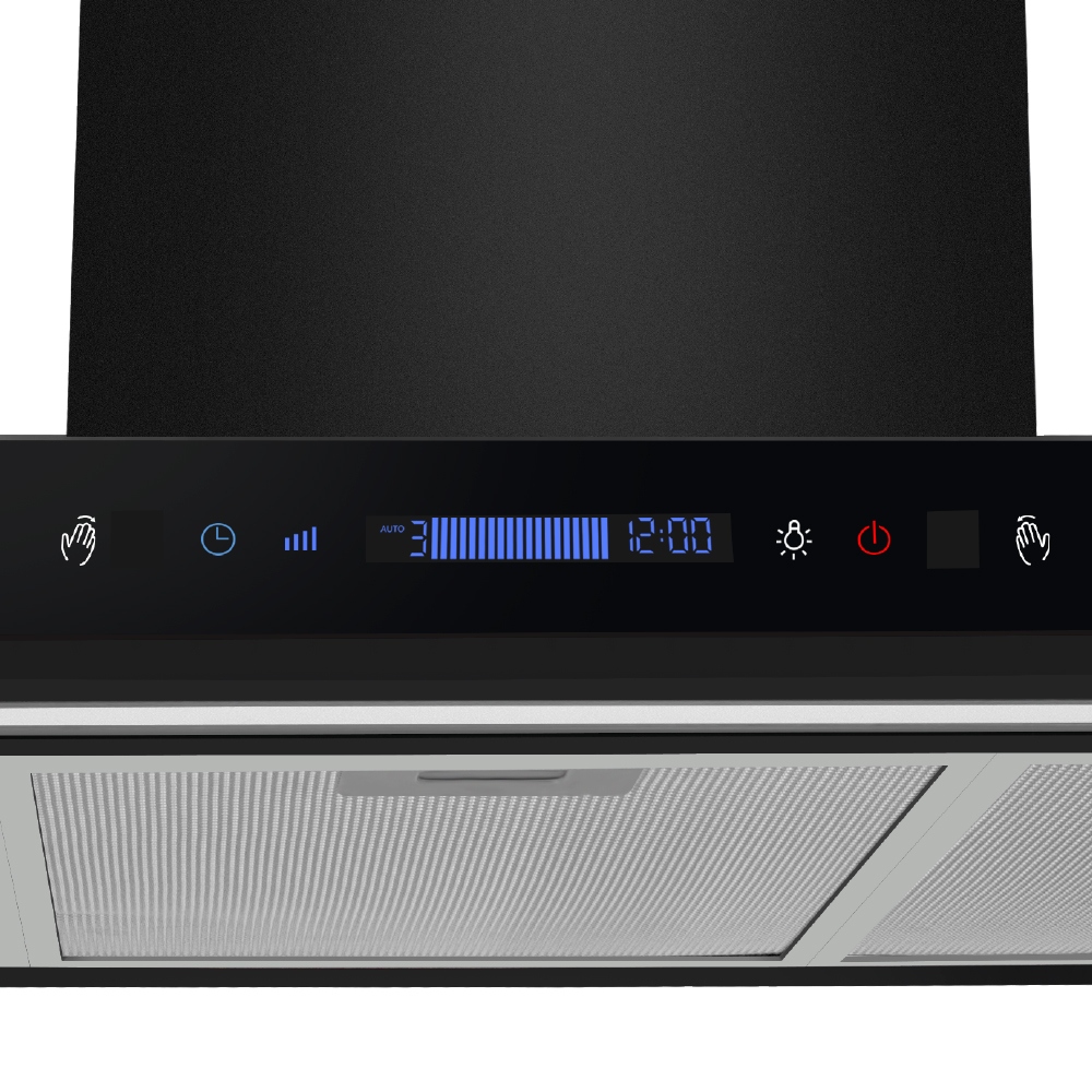 Απορροφητήρας Κουζίνας 90cm 200W σε Μαύρο Χρώμα με Χειρισμό Κίνησης και Οθόνη Αφής Lexical LRH-9560-2