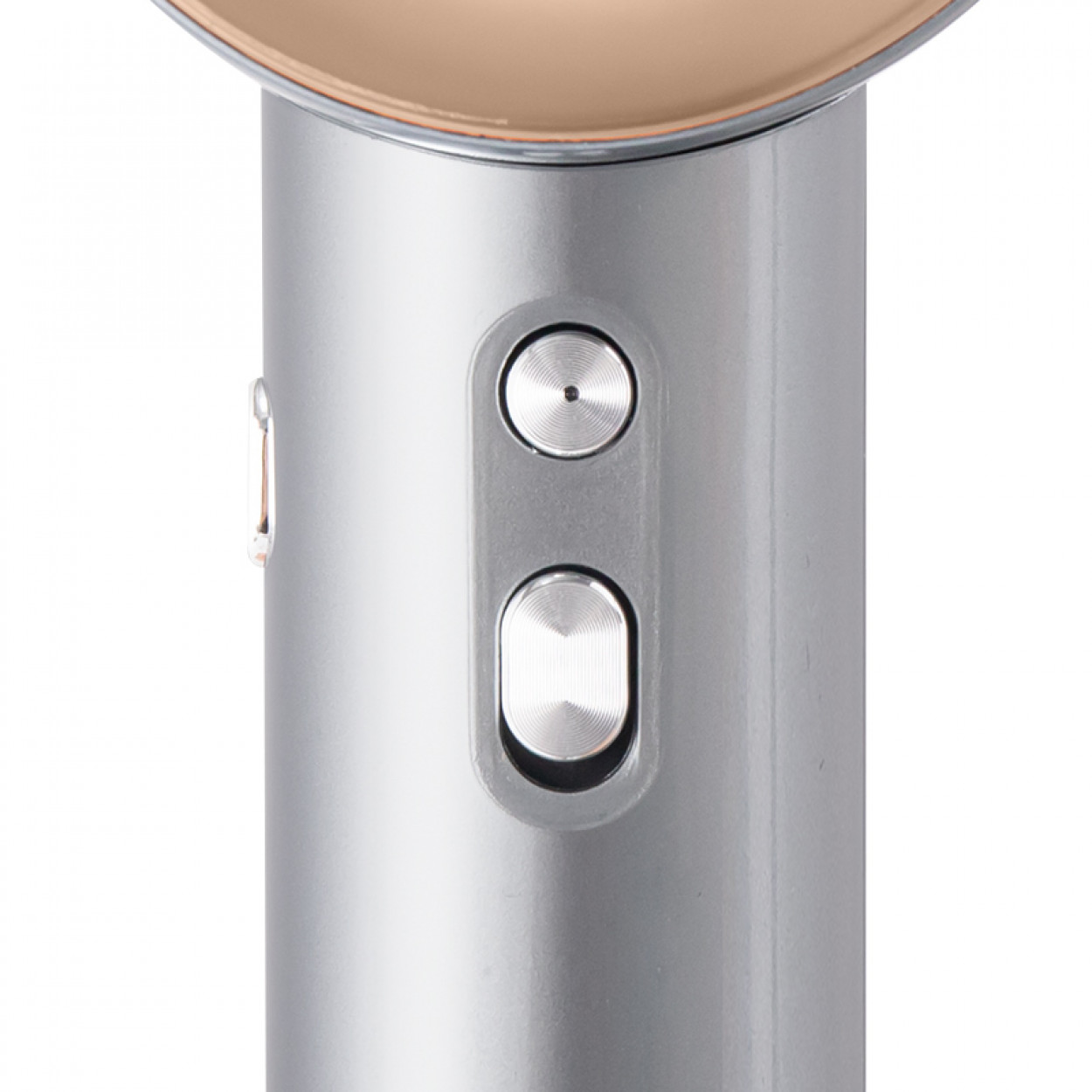 Η τεχνολογία ιονισμού αρνητικών ιόντων μειώνει το φριζάρισμα και ενισχύει τη λάμψη των μαλλιών, ενώ ο ατμοσφαιρικός φωτισμός 4 χρωμάτων προσδίδει μια premium εμπειρία χρήσης. Διαθέτει 3 επίπεδα θερμότητας, 3 ταχύτητες, λειτουργία κρύου αέρα, μαγνητικό ακροφύσιο για εύκολη εναλλαγή εξαρτημάτων και προστασία από υπερθέρμανση.