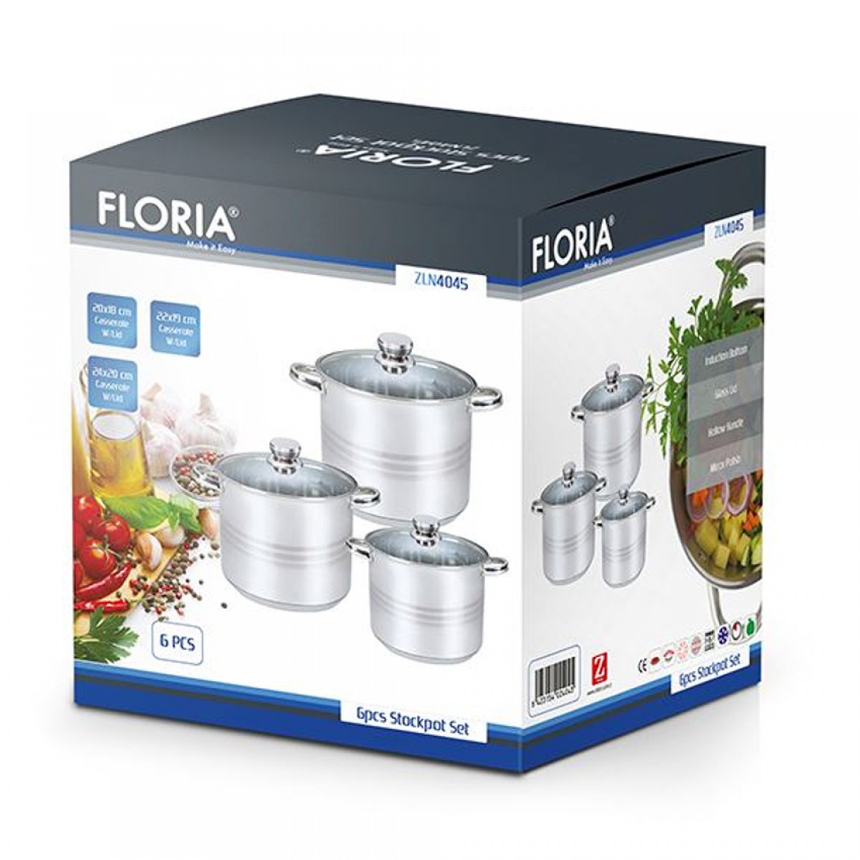Zilan ZLN4045 Cookware Set – 6-Piece Stainless Steel Pots