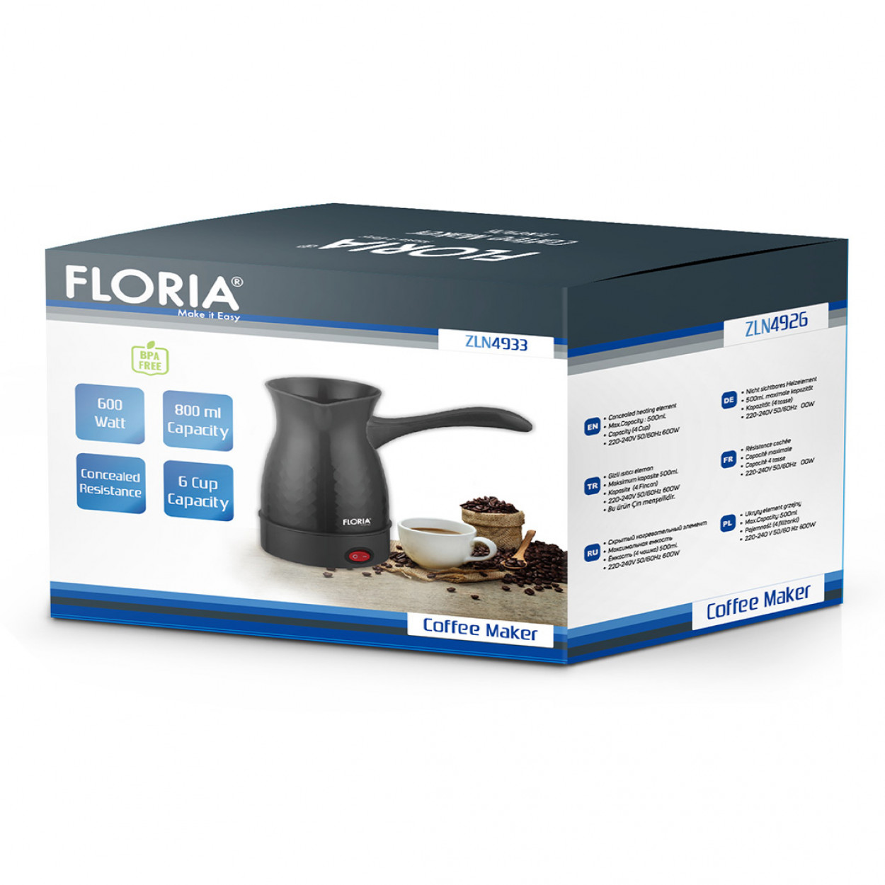 Enjoy your favorite Greek coffee or any hot beverage quickly and easily with the Zilan ZLN4933 electric coffee pot. With a modern design and practical functionality, it is ideal for everyday use at home, in the office, or in spaces without a kitchen.
