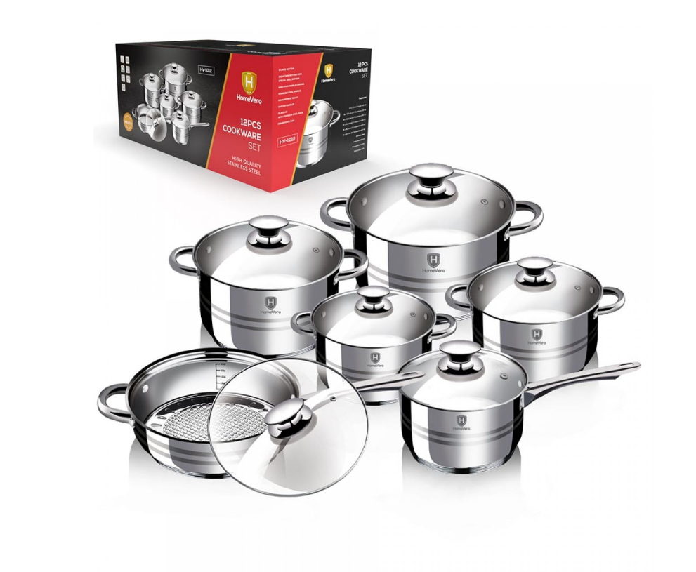 HomeVero HV-1012 – 12-Piece Stainless Steel Cookware Set