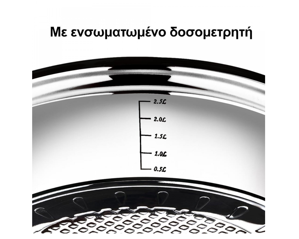 - Casserole with glass lid: Ø24 × 14.5 cm – 6.5L (inner gradation: 5L)