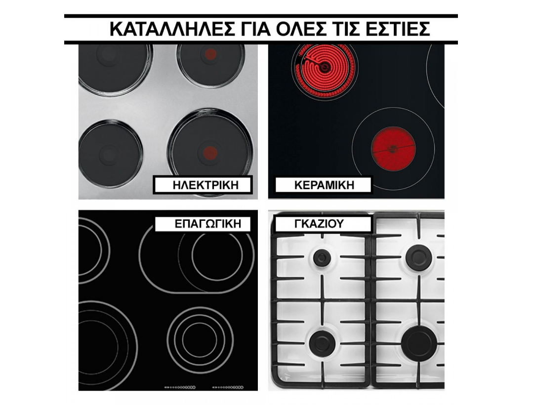 - Frying pan with glass lid: Ø24 × 7.5 cm – 2L