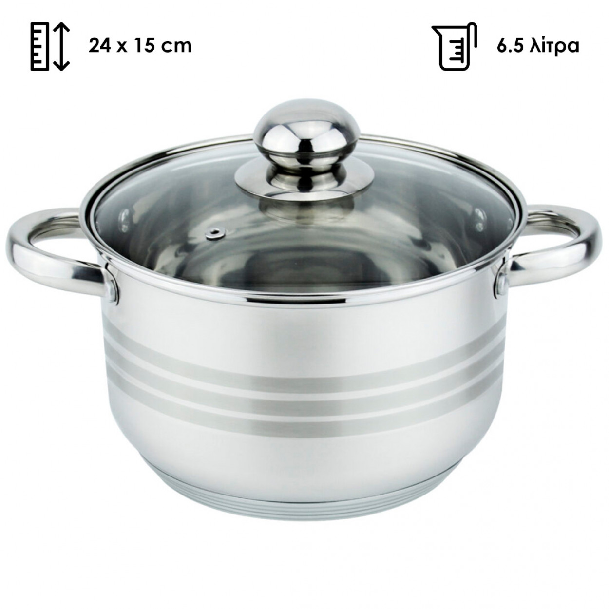 Zilan ZLN4069 Stainless Steel Casserole – 24cm / 6.5L with Glass Lid