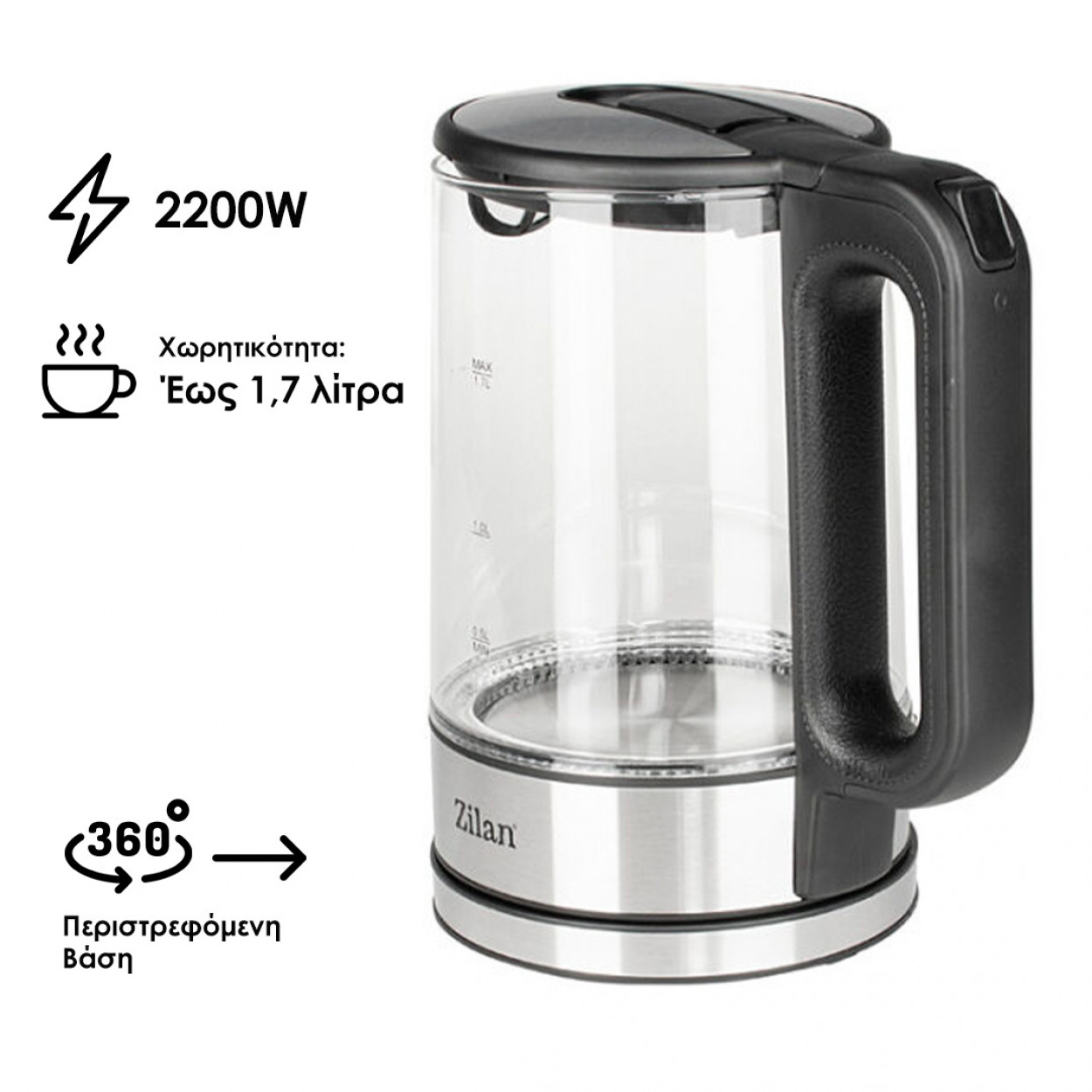 Γυάλινος Βραστήρας Zilan ZLN1796 – 1.7L, 2200W, με LED