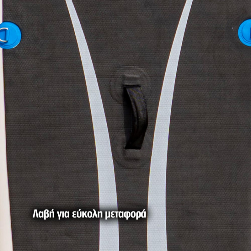 - Υλικά κατασκευής: PVC και EVA με τεχνολογία drop-stitching, που επιτρέπει στη σανίδα να διατηρεί αναλλοίωτο το σχήμα της όταν φουσκώνεται με υψηλή πίεση.