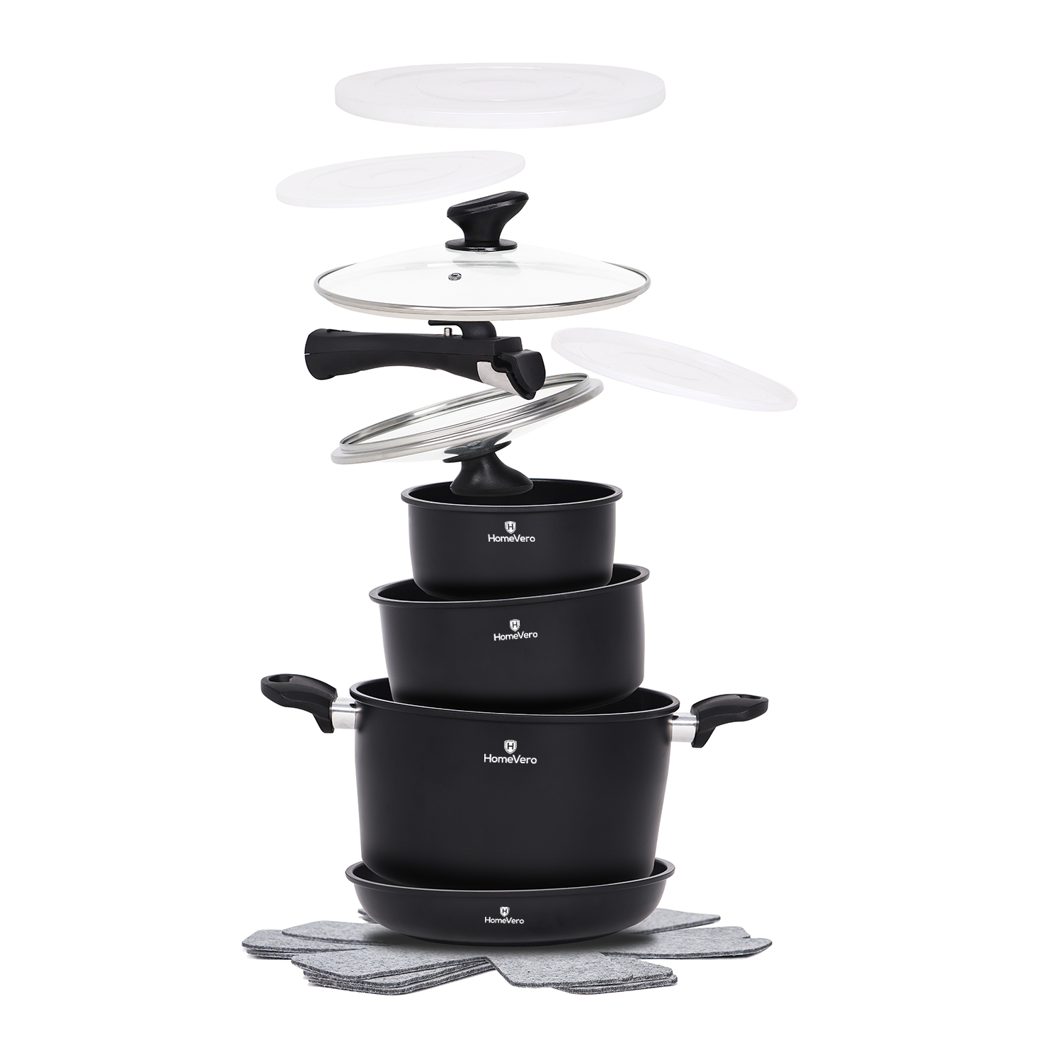 Σετ Μαγειρικά Σκεύη 13 τμχ με Αποσπώμενα Χερούλια HomeVero HV-1013B (Μαύρο)