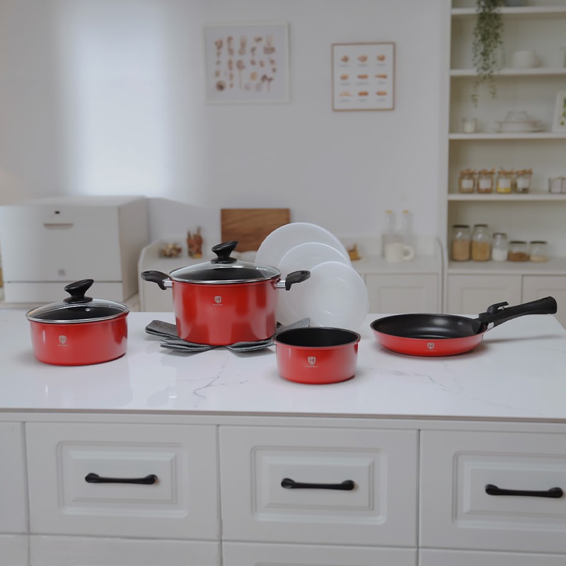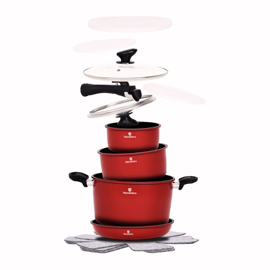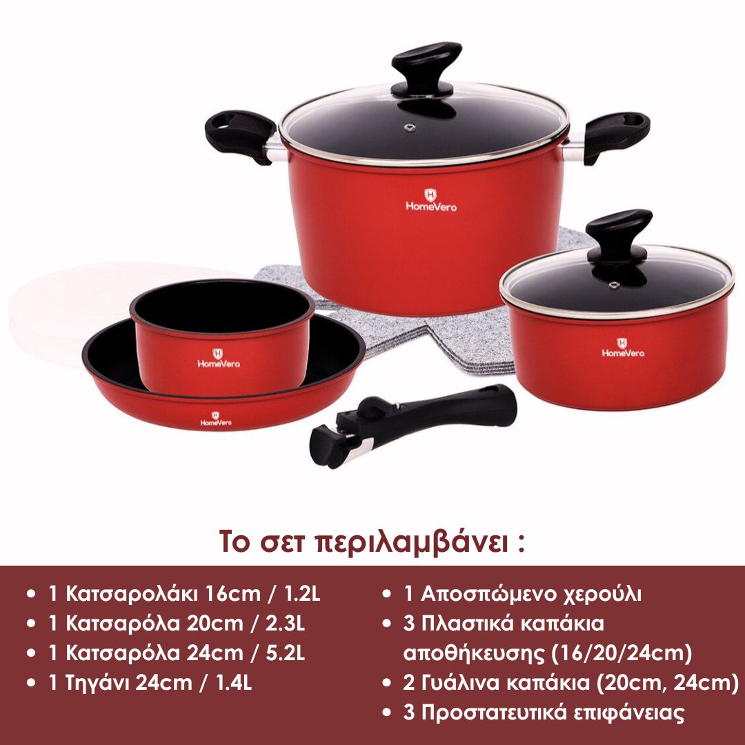 Σετ Μαγειρικών Σκευών 13τμχ με Αποσπώμενα Χερούλια – HomeVero HV-1013R (Κόκκινο)