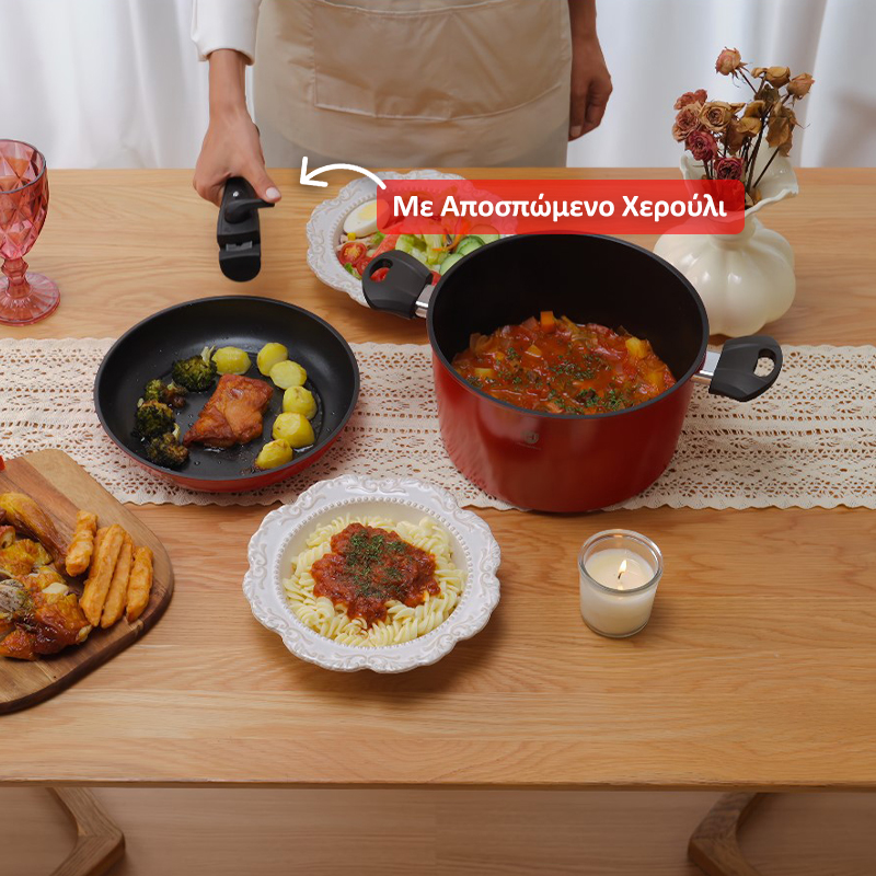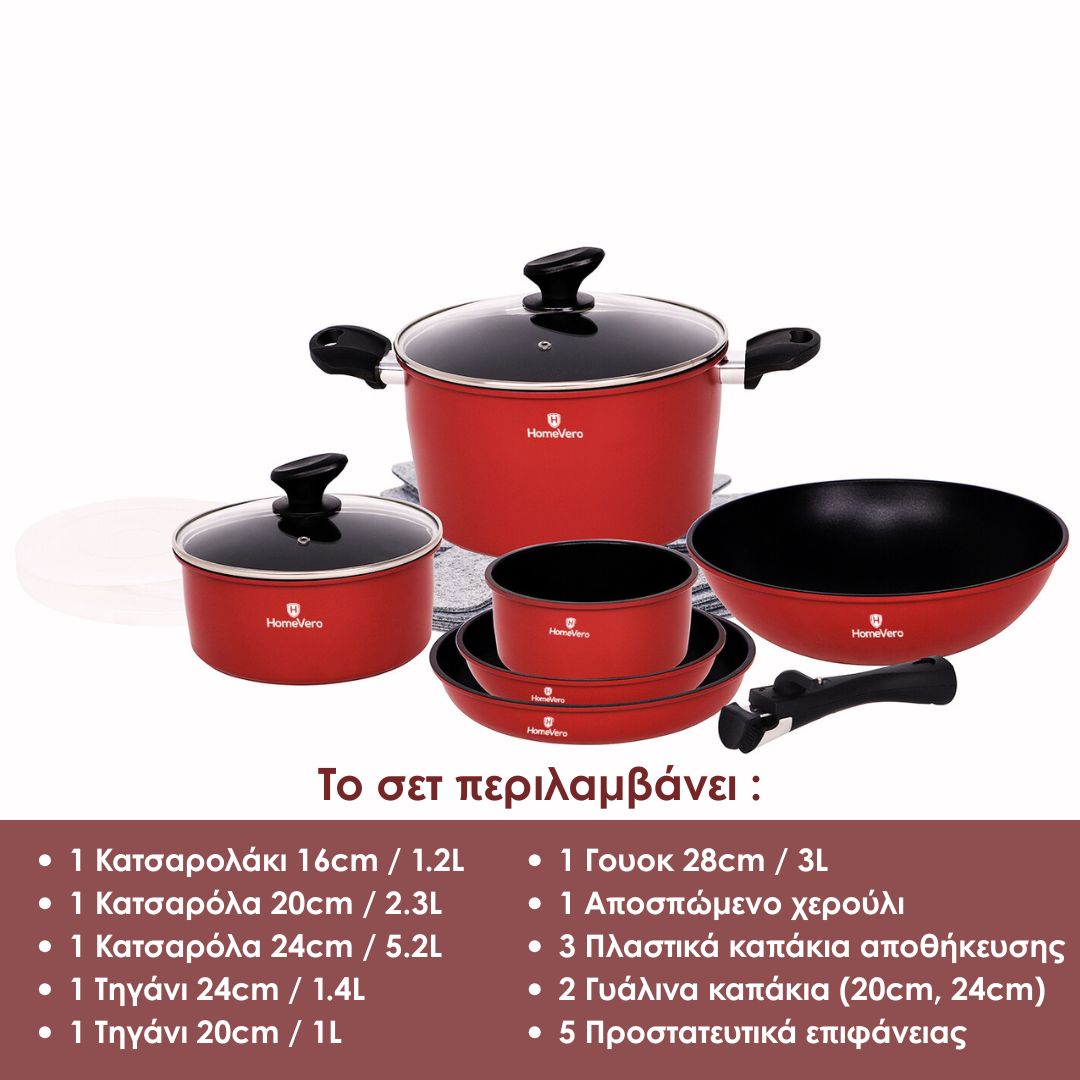 Σετ Μαγειρικών Σκευών 17τμχ με Αποσπώμενα Χερούλια – HomeVero HV-1017R (Κόκκινο)