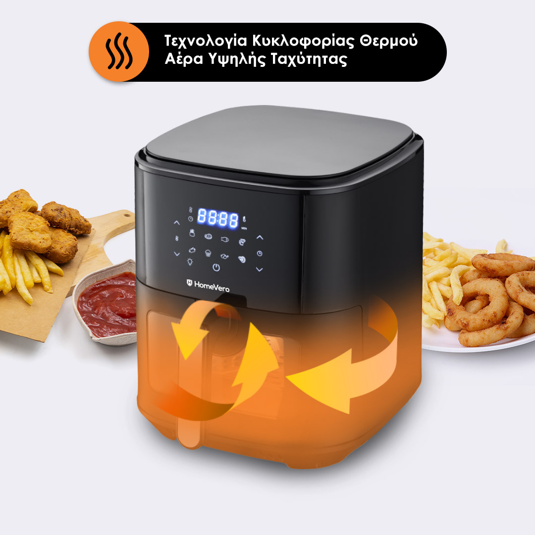 Φριτέζα Αέρος 6.5Lt με ψηφιακό έλεγχο για Υγιεινό Μαγείρεμα Χωρίς Λάδι 1500W HomeVero HV-AF6.5