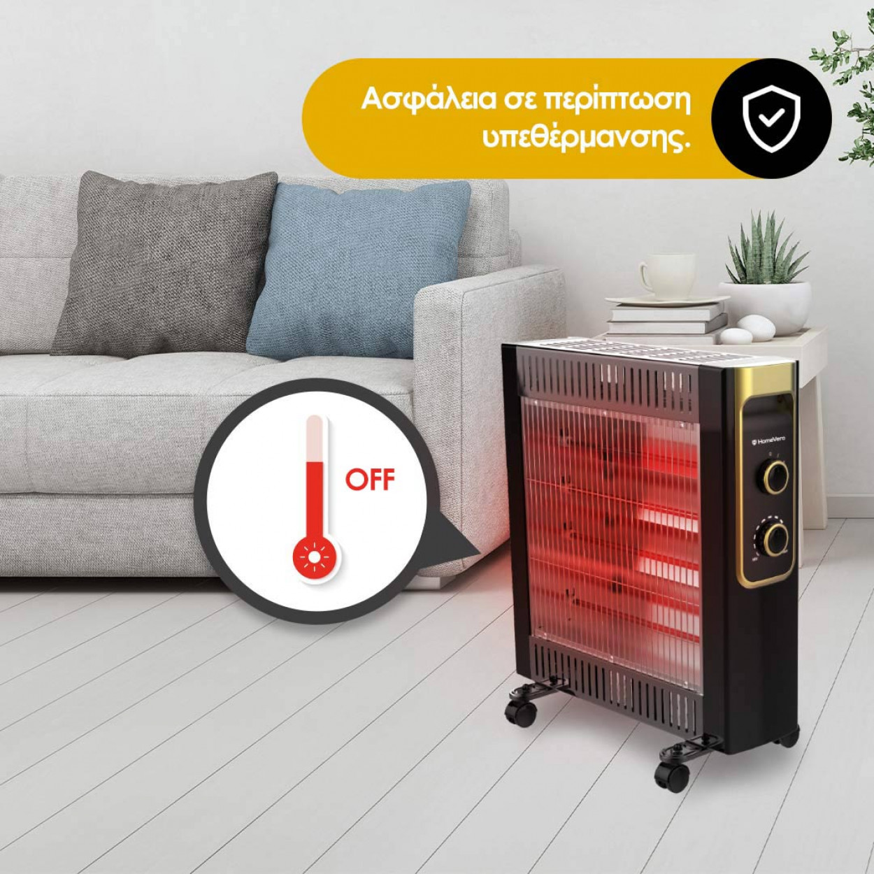Θερμάστρα Χαλαζία με ρυθμιζόμενο θερμοστάτη 2200W HomeVero HV-QH2200