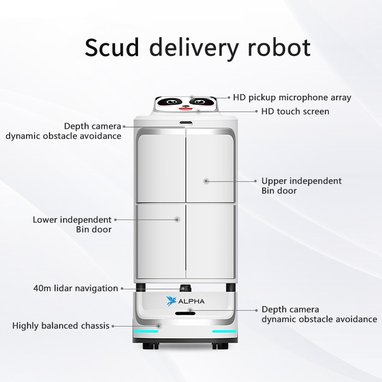 Το Scud Hotel Service Robot μπορεί να χρησιμοποιηθεί σε χώρους εξυπηρέτησης όπως ξενοδοχεία, κτίρια γραφείων, νοσοκομεία, εστιατόρια κ.ά.