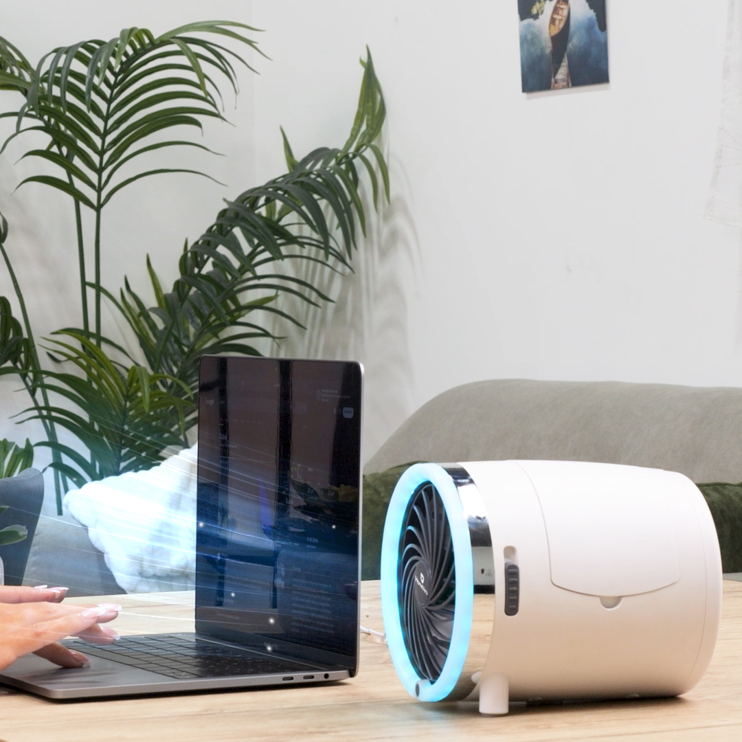 Take it anywhere: office, camping, living room, bedside table. All it needs is a simple USB connection and… coolness everywhere.