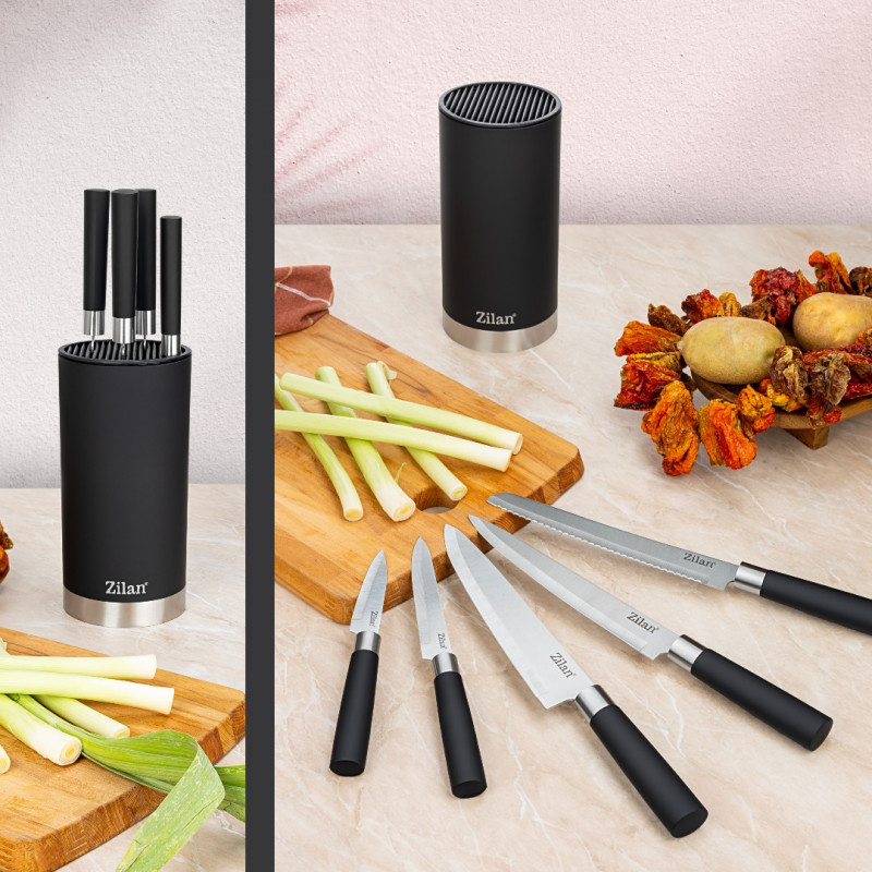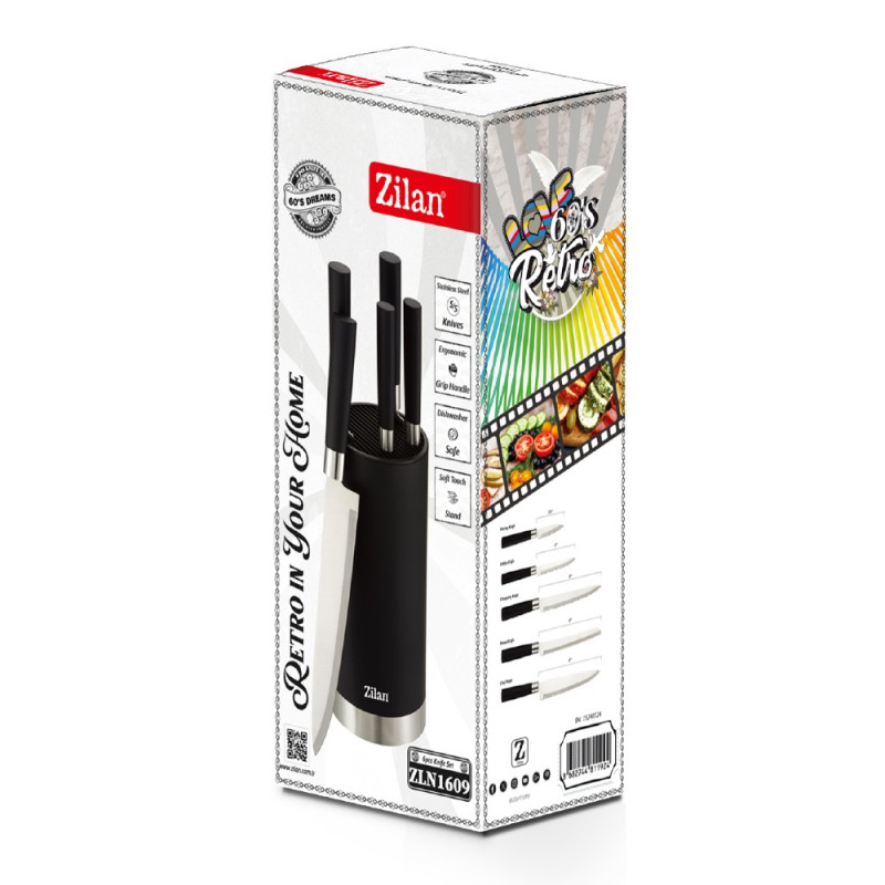 Zilan ZLN1609 6-Piece Knife Set with Block & Black Design